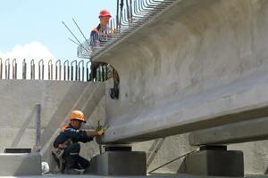 Описание: Поставка железобетонных балок и элементов опор для строительства моста. Продукция использовалась для возведения опор и пролётных строений.
